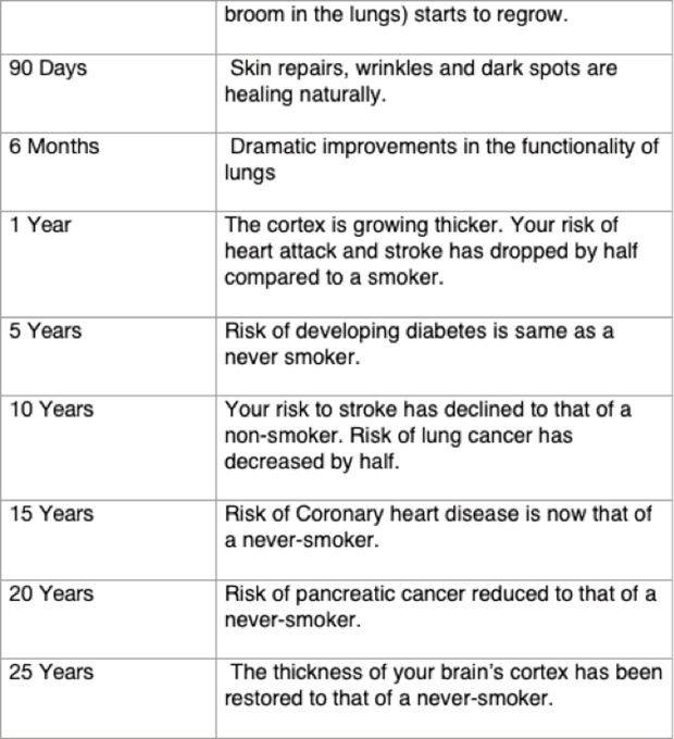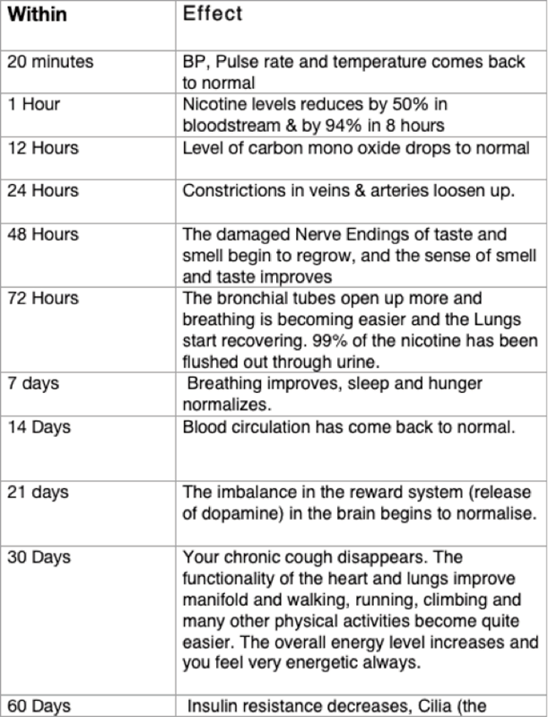 So it’s quite evident that quit smoking benefits start the moment you quit smoking and withdrawal is the way your body cleanses itself. Let your body heal itself so you get free from this misery and the slavery of nicotine once and for all.
